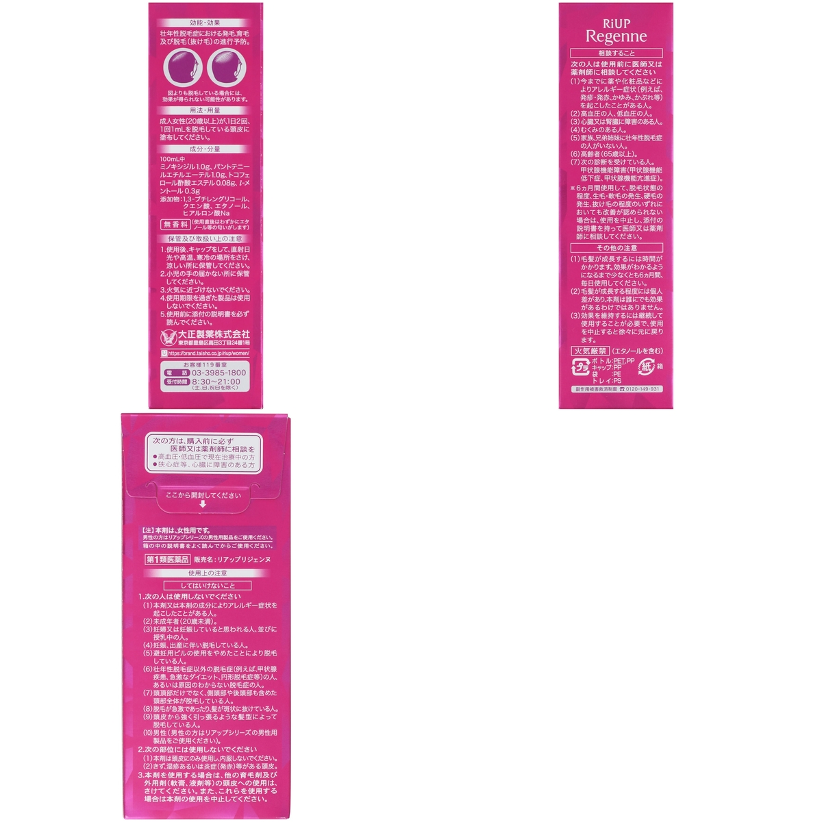 *2:リアップリジェンヌは十分髪が乾いてからお使いください。
