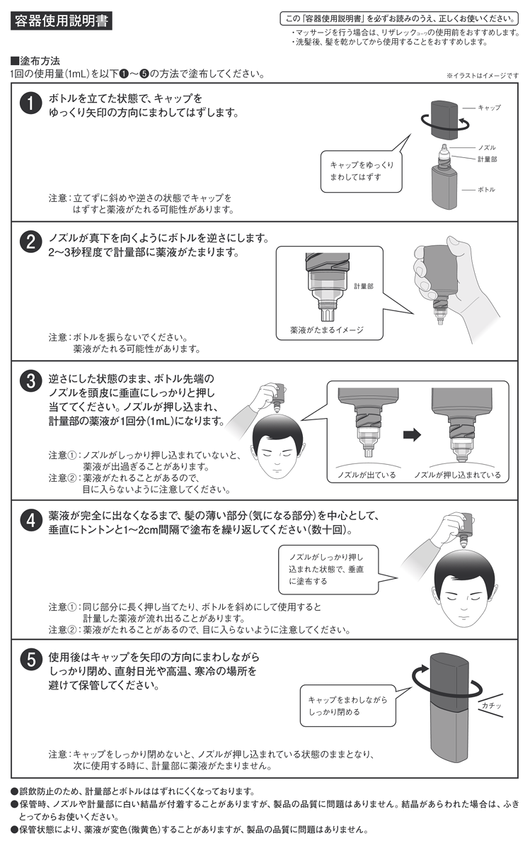 2.毛髪が成長する程度には個人差があり,本剤は誰にでも効果があるわけではありません。