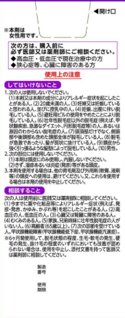 4.使用開始後6ヵ月以内であっても、脱毛状態の悪化や、次のような脱毛が見られた場合は、使用を中止し、この説明書を持って医師又は薬剤師に相談してください。
