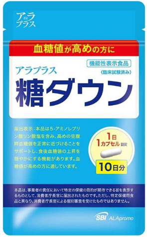 原材料:デンプン(国内製造)、5-アミノレブリン酸リン酸塩含有加工食品/結晶セルロース、HPMC、ステアリン酸カルシウム、微粒二酸化ケイ素