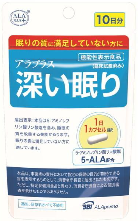 原材料:デンプン(国内製造)、5-アミノレブリン酸リン酸塩含有加工食品/結晶セルロース、HPMC、ステアリン酸カルシウム、微粒二酸化ケイ素