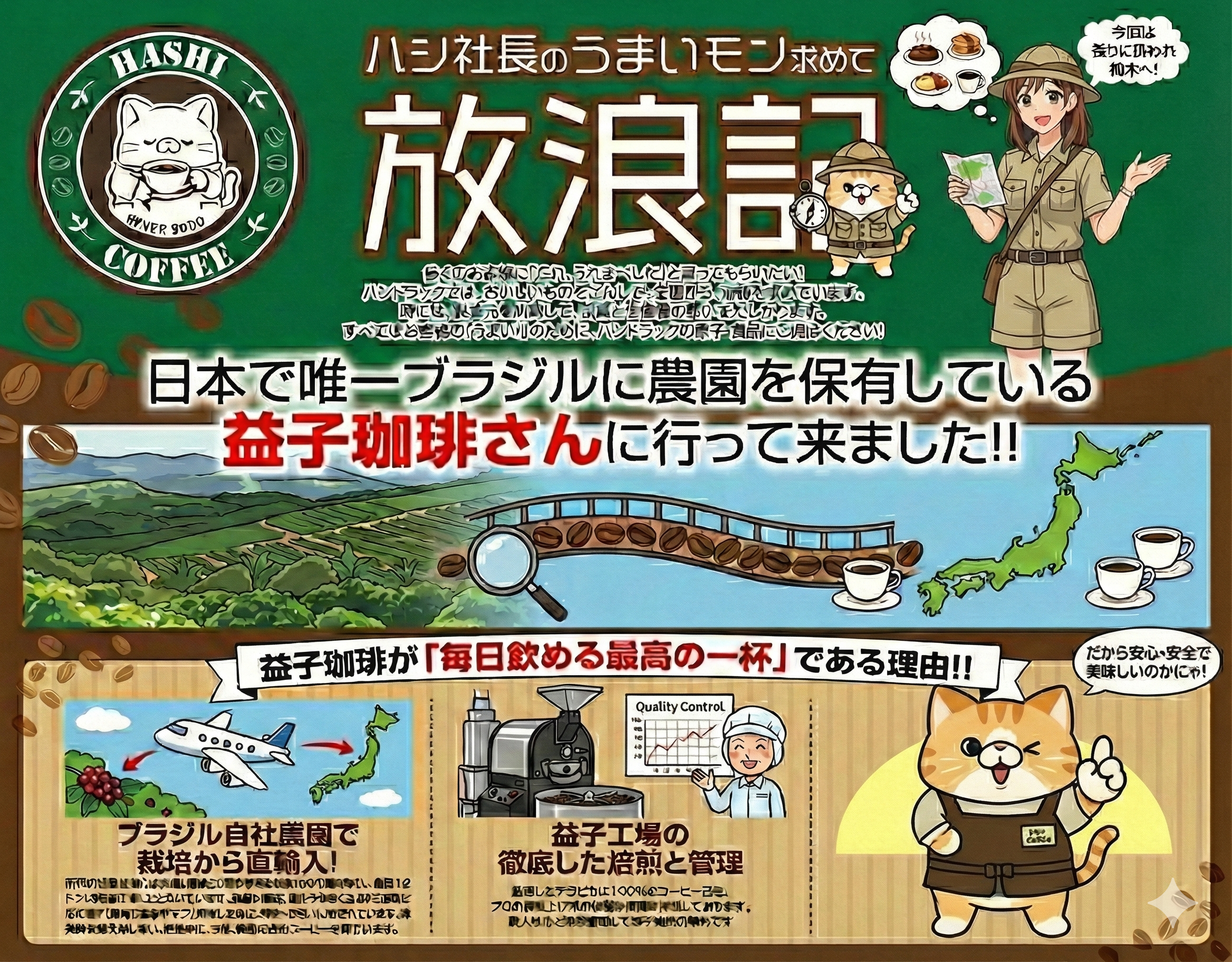 「日本で唯一ブラジルに農園を保有している」とも言われる益子珈琲。 現地の情景と、工場の徹底した品質管理…その“こだわり”を、毎日の一杯で。